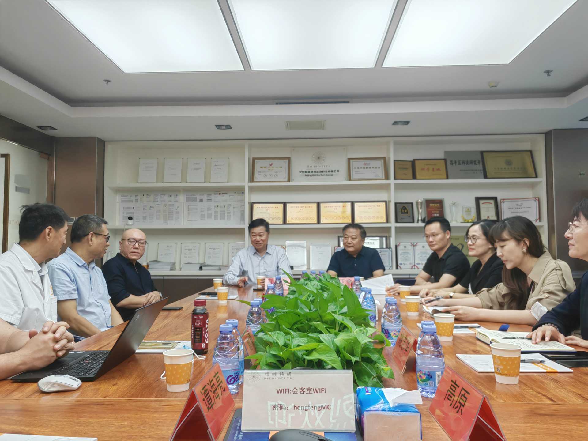9月21日下午,中国医药党委书记、董事长李亚东一行赴北京恒峰铭成生物科技有限公司调研考察并与恒峰铭成董事长、首席科学家郝好杰座谈交流。李亚东一行首先参观了恒峰铭成干细胞培养实验室、企业文化长廊,实地了解恒峰铭成细胞治疗业务发展、技术理念与应用场景等情况。与会人员就医疗器械研发生产、健康管理合作、细胞治疗产学研合作等内容进行了深度交流。