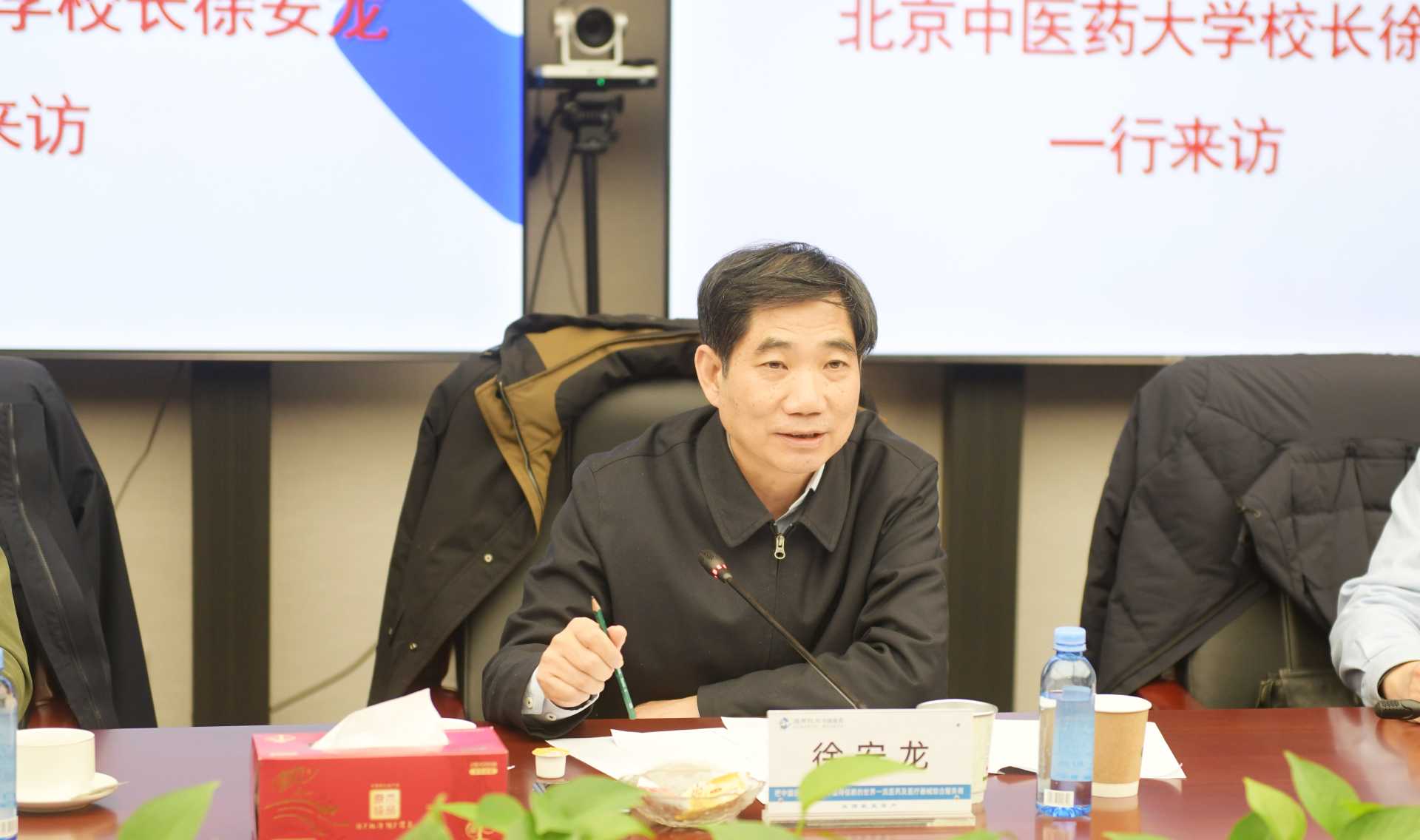 李亚东对徐安龙一行的到访表示欢迎,介绍了通用技术集团主要情况和中国医药各业务板块相关情况。李亚东表示,北京中医药大学和通用技术中国医药有着悠久的合作历史,双方在中药标准化种植、产业链发展、国际化合作和助力乡村振兴等领域的精诚合作取得了突出成果,是校企合作的典范。希望双方继续携手,在科技成果转化、产品创新、中药服务、人才培养等领域深化合作,共同推动中医药发展,更好服务人民健康生活需求。徐安龙介绍了北京中医药大学中药制剂研发、人才培养、科研转化和推动中医药出海等有关情况。他表示,北京中医药大学作为国内中医药领域知名高校,希望继续与通用技术集团和中国医药加强合作,共同促进中医药产学研一体化发展和现代化中医药人才培养。