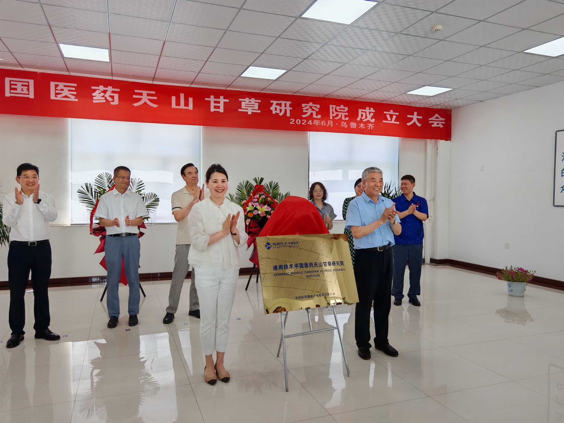 6月25日,通用技术中国医药天山甘草研究院在新疆天山药业正式成立,通用技术集团副总经理、党组成员古琎,北京中医药大学教授、中国中药协会种植养殖专委会主任委员王文全共同为研究院揭牌,公司总经理助理吕和平主持仪式,北京中医药大学教授侯俊玲、新疆药学会理事长顾政一、新疆医科大学药学院院长李莉、新疆药物研究所副所长赵军等资深专家共聚天山、共襄盛举,为研究院建设与发展把脉定向、建言献策。