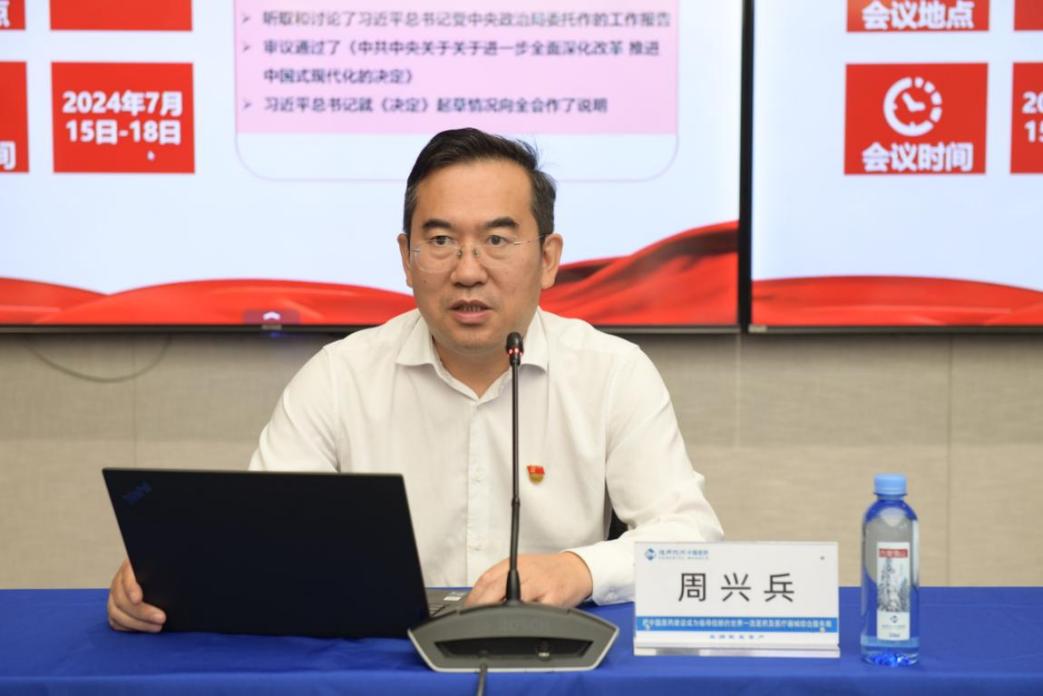 9月4日下午,中国医药召开公司本部党的二十届三中全会精神宣讲报告会,公司党委专职副书记周兴兵为本部干部职工宣讲全会精神,要求本部干部职工在学习贯彻全会精神上作表率、走在前,转作风、强管理、促改革,以饱满的政治热情、强烈的使命担当、扎实的工作举措,当好参谋助手,赋能基层发展,为公司高质量发展做出新的更大贡献。