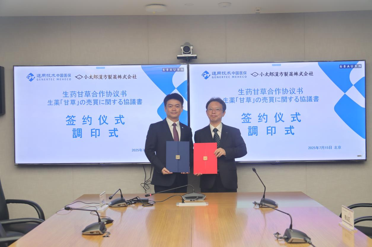 7月15日,通用技术中国医药所属中国医保与日本小太郎汉方制药株式会社签署战略合作协议,公司副总经理洪嘉庆与日本小太郎汉方制药株式会社社长鈴木一平共同见证签约。本次合作标志着双方在汉方药产业链协同发展迈出新步伐。下一步公司将充分发挥全产业链优势,推动优质中药材国际化进程,为构建人类卫生健康共同体贡献力量。同日,双方业务团队赴内蒙古中药新厂区进行实地考察。洪嘉庆陪同日方详细调研黄芪标准化种植基地及精深加工生产线,现场开展技术指导与业务洽谈。中国医保负责人及相关工作人员参加相关活动。