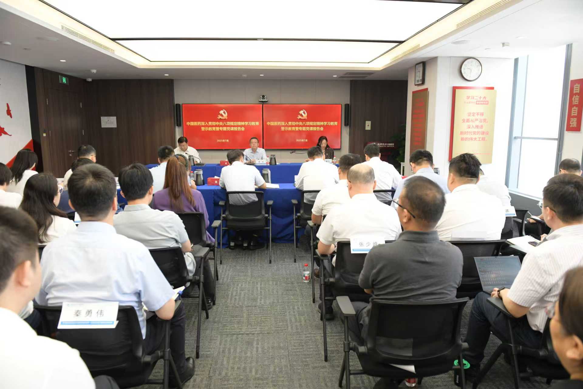 7月11日,中国医药召开深入贯彻中央八项规定精神学习教育警示教育暨专题党课报告会,深入学习贯彻习近平总书记在中共中央政治局第二十一次集体学习时重要讲话精神,深刻汲取反面案例教训,进一步推动学习教育走深走实,以彻底自我革命精神深入推进作风建设。公司党委副书记、总经理胡慧冬主持会议并传达有关文件精神;公司纪委书记、党委委员郭政通报了典型案例。公司党委书记、董事长杨光以《深刻汲取反面典型案例教训,以彻底自我革命精神推进作风建设,为加快推进中国医药转型发展提供坚强保障》为主题讲授专题党课,以“四个深刻”为主线回顾党的百年作风建设历程,系统阐释习近平总书记关于作风建设的重要论述,深刻剖析典型案例根源,强调要深刻认识违反中央八项规定精神的严重危害,进一步增强作风建设的紧迫感责任感,善始善终、善作善成推动学习教育走深走实。