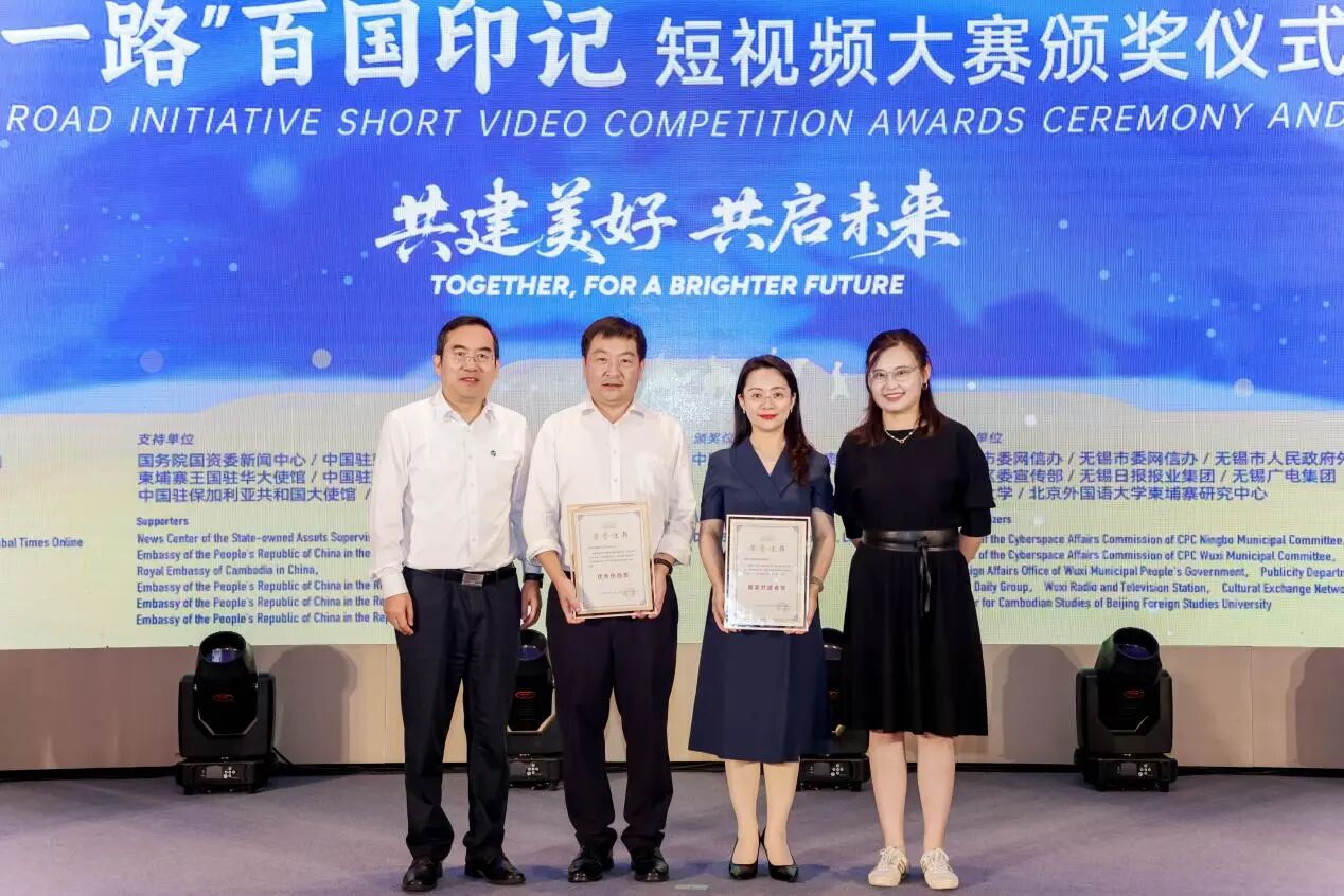 国庆前夕,由中国公共外交协会、环球网联合主办,国务院国资委新闻中心、中国驻柬埔寨王国大使馆、柬埔寨王国驻华大使馆、中国驻南非共和国大使馆、中国驻保加利亚共和国大使馆、中国驻塞尔维亚共和国大使馆支持,多家政府机构、媒体及高校协办的第七届“一带一路”百国印记短视频大赛颁奖仪式在广州举办。通用技术中国医药党委专职副书记周兴兵出席颁奖仪式。通用技术中国医药报送作品《跨越山海的母婴守护》从全球130余个国家、近2000部参赛作品中脱颖而出,荣获“优秀作品奖”。集团兄弟企业通用技术国际公司《国际24小时》获“最美共建者奖”。集团公司办公室及国际公司有关负责人参加颁奖活动。