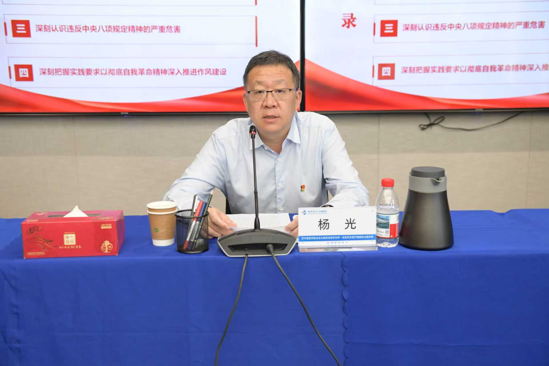 7月11日,中国医药召开深入贯彻中央八项规定精神学习教育警示教育暨专题党课报告会,深入学习贯彻习近平总书记在中共中央政治局第二十一次集体学习时重要讲话精神,深刻汲取反面案例教训,进一步推动学习教育走深走实,以彻底自我革命精神深入推进作风建设。公司党委副书记、总经理胡慧冬主持会议并传达有关文件精神;公司纪委书记、党委委员郭政通报了典型案例。公司党委书记、董事长杨光以《深刻汲取反面典型案例教训,以彻底自我革命精神推进作风建设,为加快推进中国医药转型发展提供坚强保障》为主题讲授专题党课,以“四个深刻”为主线回顾党的百年作风建设历程,系统阐释习近平总书记关于作风建设的重要论述,深刻剖析典型案例根源,强调要深刻认识违反中央八项规定精神的严重危害,进一步增强作风建设的紧迫感责任感,善始善终、善作善成推动学习教育走深走实。